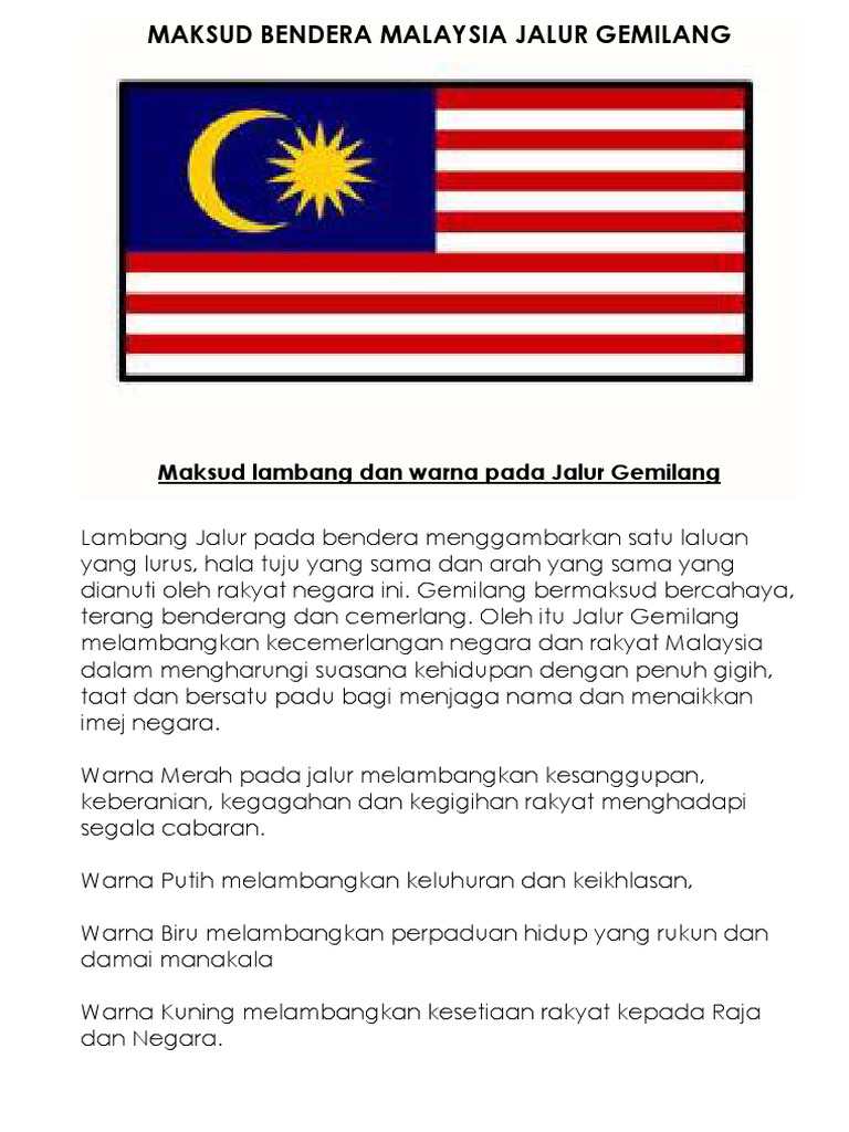You can also bookmark this page with the URL. Bendera Malaysia iaitu Jalur Gemilang mengandungi 14 jalur merah dan putih melintang yang sama lebar bermula dengan jalur merah di sebelah atas dan berakhir dengan jalur putih di sebelah bawah tanda keanggotaan yang sama dalam persekutuan 13 buah negeri dan 1 kerajaan persekutuan- Johor Kedah Kelantan Melaka Negeri Sembilan Pahang Pulau Pinang Perak Perlis Sabah Sarawak. Kenali Jalur Gemilang Maksud Bendera Malaysia Edu Bestari.